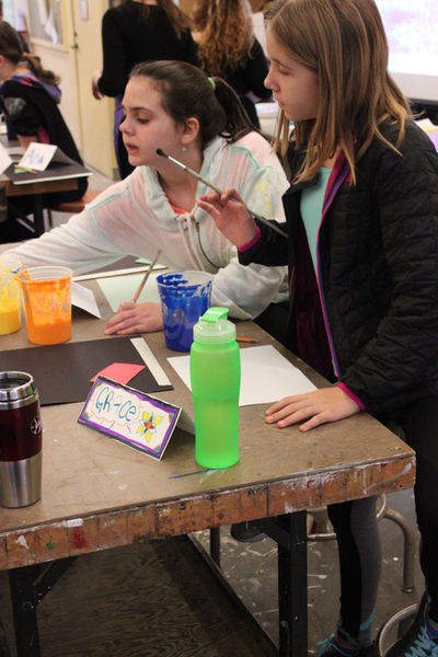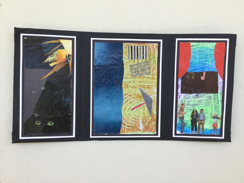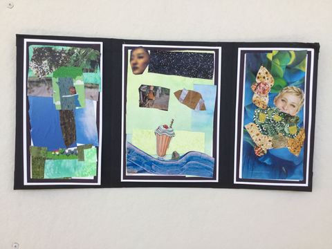 Each student created three collages which were about the ways they have overcome fears in the past, ways they might overcome a fear in the future, and a map of their favorite place. Together these three collages were matted and pasted onto a cardboard triptych.